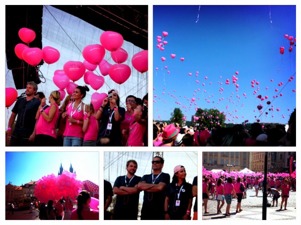 Na staromáku už bylo vše v plném proudu. Tak jsme dostali balónky,které skoro nikomu do cíle kvůli horku nevydrželi a popraskali.Holky,které nebyli poprvé navrhli,že bude lepší když půjdeme dřív protože s tím davem to pak bude děsné. Tak jsme šli o chviličku dřív než ostatní. Ani ne 5 km dlouhý pochod se mi zdál teda tak 15ti kilometrový :o) v pravé poledne ve 31stupních C. Noo to byl zase nápad.Skoro celou trasu pálilo sluníčko,nejlíp bylo v tunelu.:o) Poslední km už jsem skoro nemohla ale tak nějak jsem to zvládla a úspěšně jsme dorazili do cíle.Samozdřejmě jsme si zabrali místo hned před pódiem ať máme super výhled. Hodinové vystoupení měl Děda mládek,potom moje oblíbená skupina Chinaski,jenže stál před pódiem se fakt nedalo jenom to tam dunělo,a já už pociťovala jak mě začíná bolet hlava takže jsem si rychle vzala prášek,vystála hodinovou frontu na studené pití a šla se nechat postříkat od hasičů ,kteří tam stříkali lidi hadicí protože to vedro se fakt nedalo,stín nikde žádný,pro člověka co má slunce zakázané fakt ideální :o)